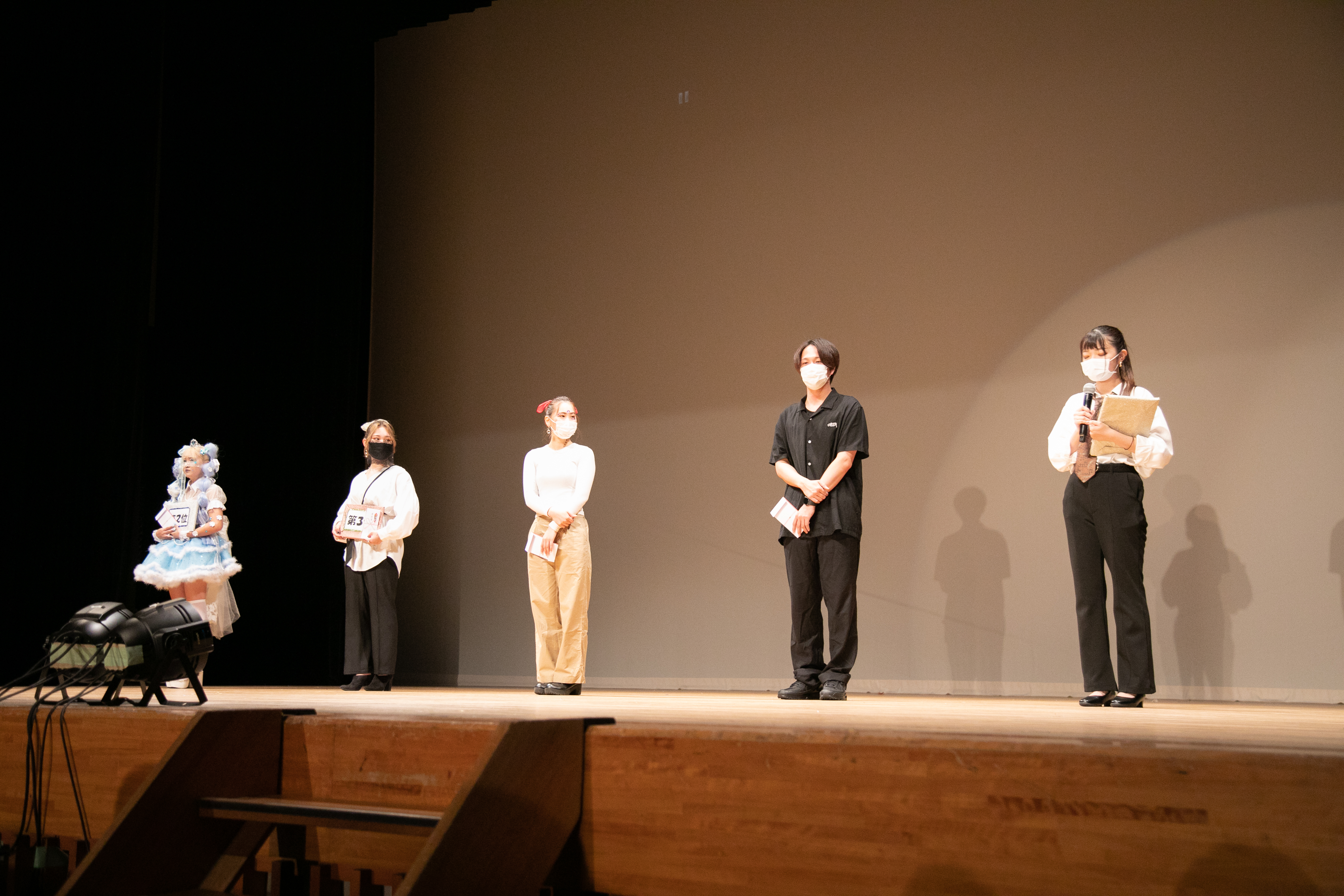 その後、各グループのリーダーに並んでもらい、1位から3位まで発表されます。