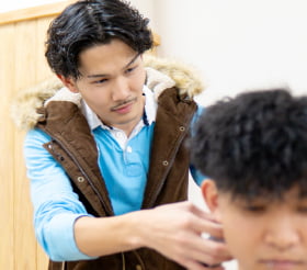 カットやシェービングに加え、接客マナー、コミュニケーション、スタイリング提案力など、お客様に信頼される理容師として必要な力を幅広く育みます。