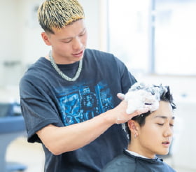 理容の基本となるカット・シェービングはもちろん、トレンドに対応したスタイルやヘッドスパなどの技術も習得。現場さながらの実習環境で、着実に力を伸ばします。