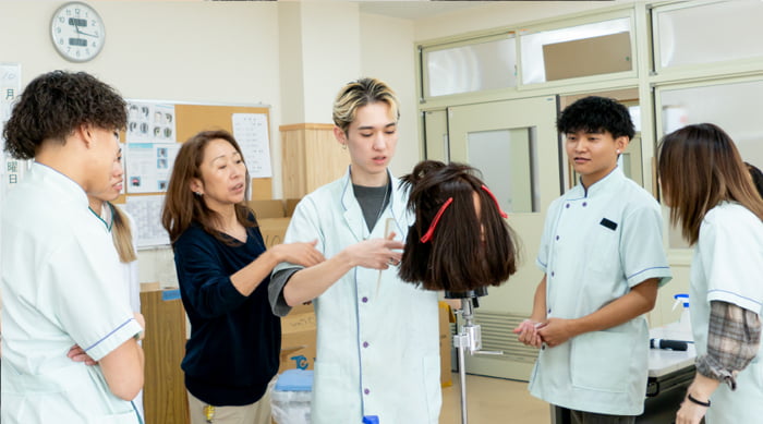理容師国家試験に向けた実技・学科の対策も充実。試験に必要な技術・知識を基礎から丁寧に指導し、高い合格率を支えています。