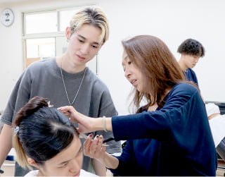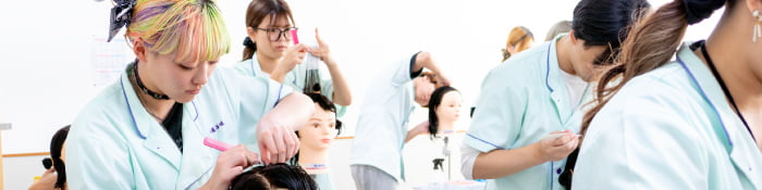 受講料無料(テキスト代等自己負担)の公共職業訓練長期高度人材育成訓練コース・美容師養成コース(2年間)を受講できる制度です。